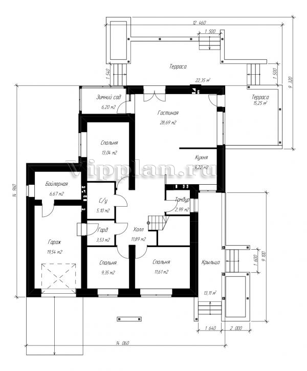 | Размеры дома: | 14.06м×14.96м |