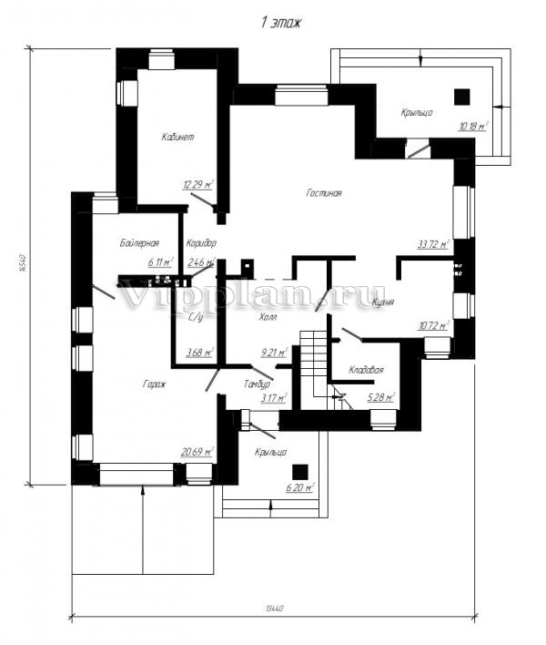 | Размеры дома: | 13.44м×14.54м |