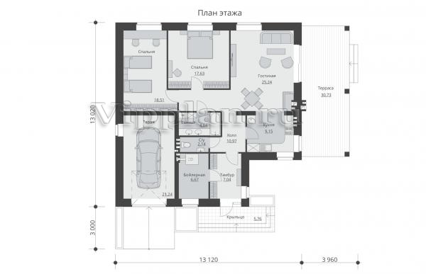| Размеры дома: | 13.02м×13.12м |