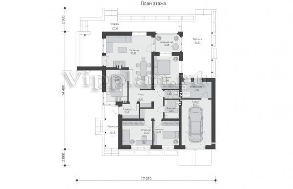 | Размеры дома: | 14.48м×17.07м |