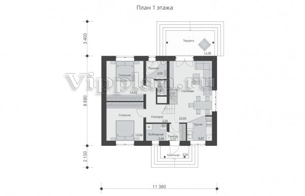 | Размеры дома: | 11.38м×14.43м |