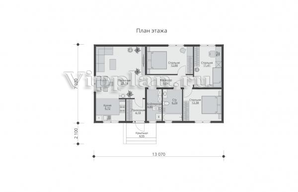| Размеры дома: | 13.07м×7.92м |