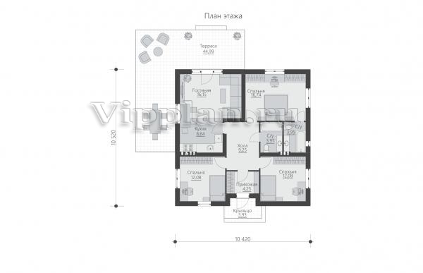 | Размеры дома: | 10.42м×10.52м |