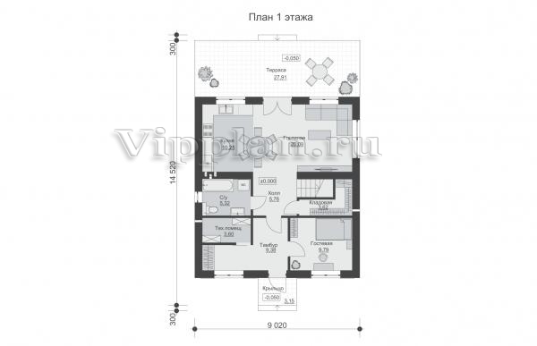 | Размеры дома: | 15.12м×9.02м |